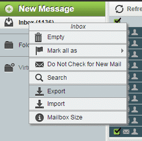 Ripetere lo stesso per tutte le cartelle che si desidera esportare da Horde web-mail.